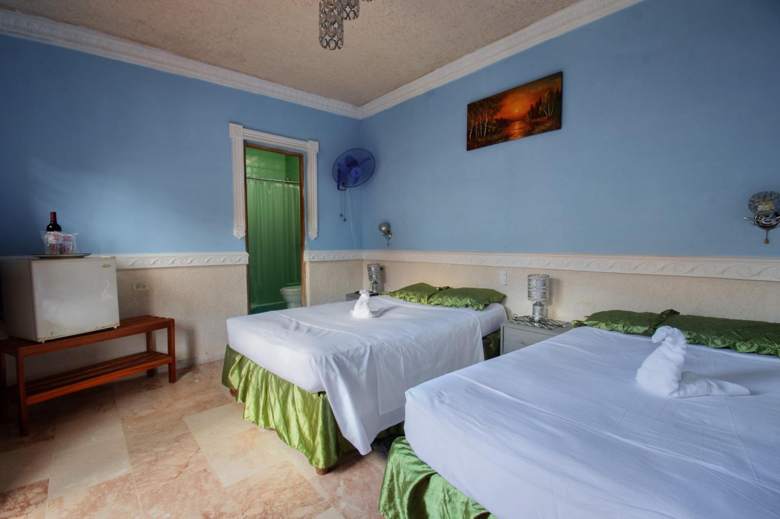 Room with capacity for 4 people (2 double beds). Equipped with air conditioning, private bathroom, Wi-Fi signal, 120V and 240V electrical current, safe, hair dryer, private terrace and mini bar.